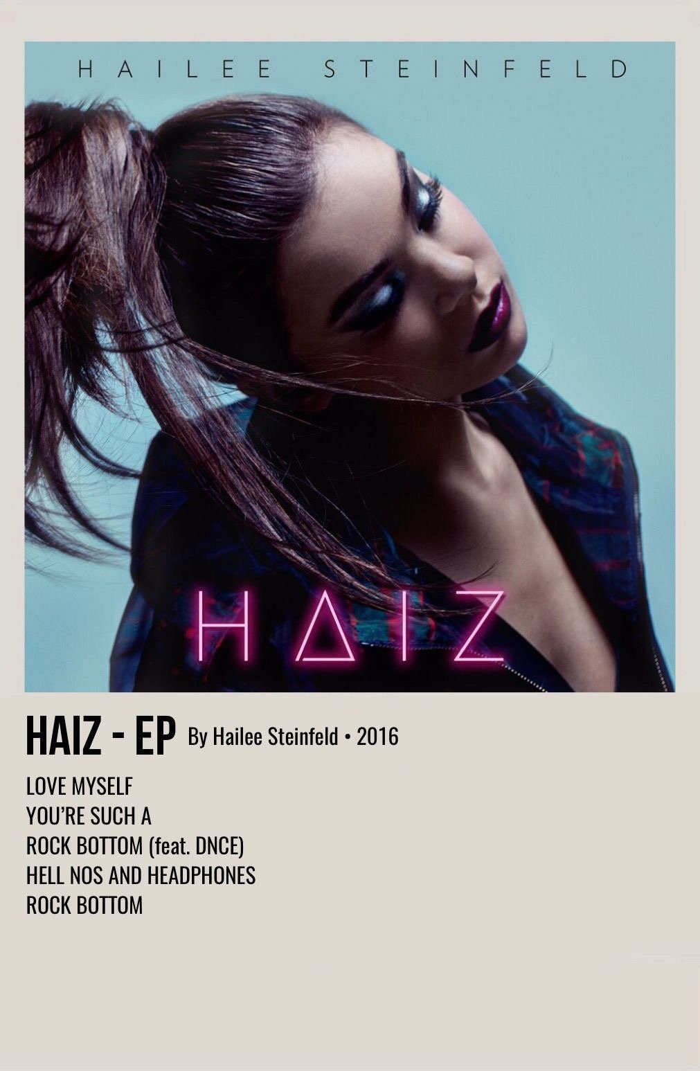 Hailee steinfeld vinyl record. Hailee Steinfeld - HAIZ | Releases - Discogs Love Myself, 3:38. You're Such A, 3:35. Rock Bottom, 3:17. Hell Nos And Headphones, 3:50. Credits (5). Julia Michaels. Written-By. Justin Tranter. Hailee Steinfeld: Home Music · Coast · Masterpiece (feat. Hailee Steinfeld) · Half Written Story. Hailee Steinfeld: CDs & Vinyl - Amazon.com Online shopping from a great selection at CDs & Vinyl Store. ... Haiz-Japan Debut Mini Album. Pinch to zoom-in further ... Mini Album. by Hailee Steinfeld. Hailee Steinfeld Merch, Shirts, Vinyl Records and Hoodies Store The latest Hailee Steinfeld shirts, Hailee Steinfeld hoodies, Hailee Steinfeld vinyl and more in the official Hailee Steinfeld merch store. Check it out.